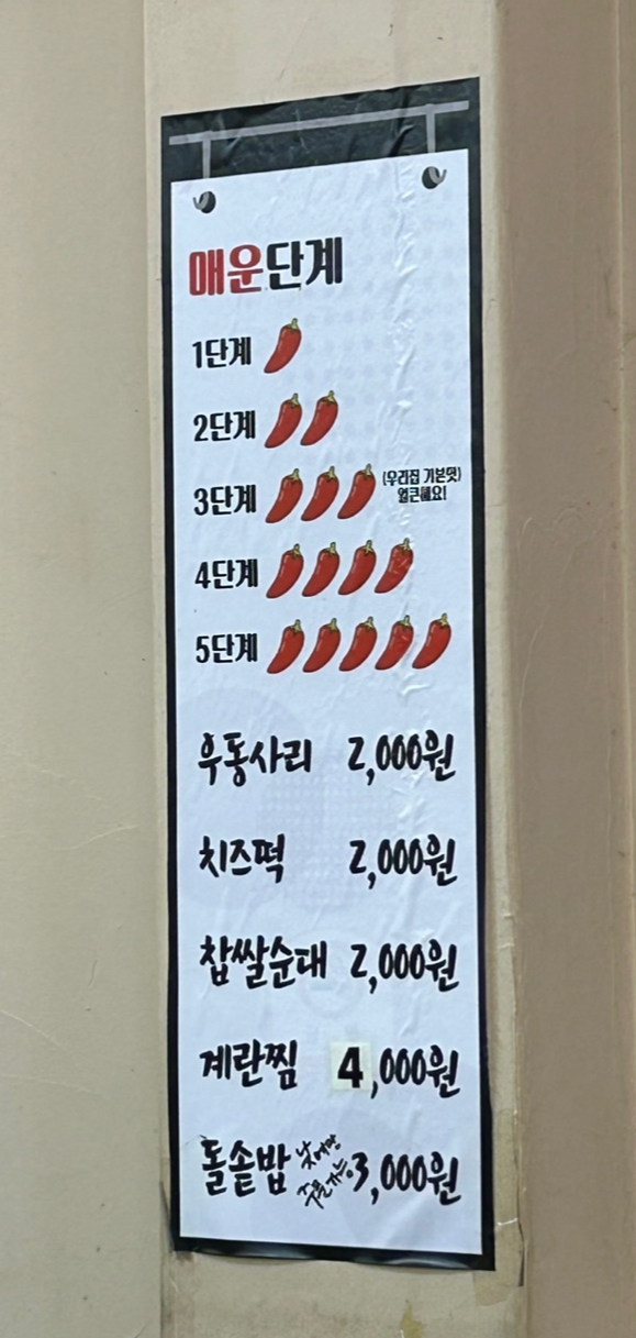 맵기는 취향에 맞게 조절해서 주문 가능합니다! 제일 인기는 3단계 인거 같아요~