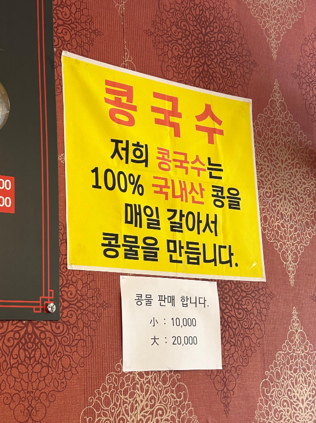콩짬뽕 콩짜장 수제콩돈까스 콩국수 탕수육 군만두
