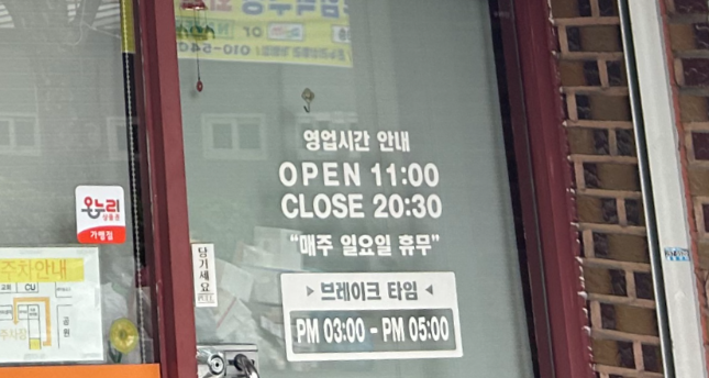 매주 일요일 정기휴무