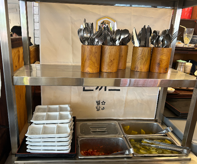 셀프바 _ 수저, 포크, 나이프, 반찬그릇, 김치, 단무지, 피클