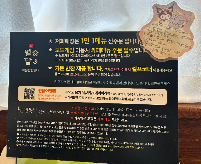 1인1메뉴 선주문 必, 음식이나 카페메뉴 주문 시 보드게임 무료로 이용 가능합니다.