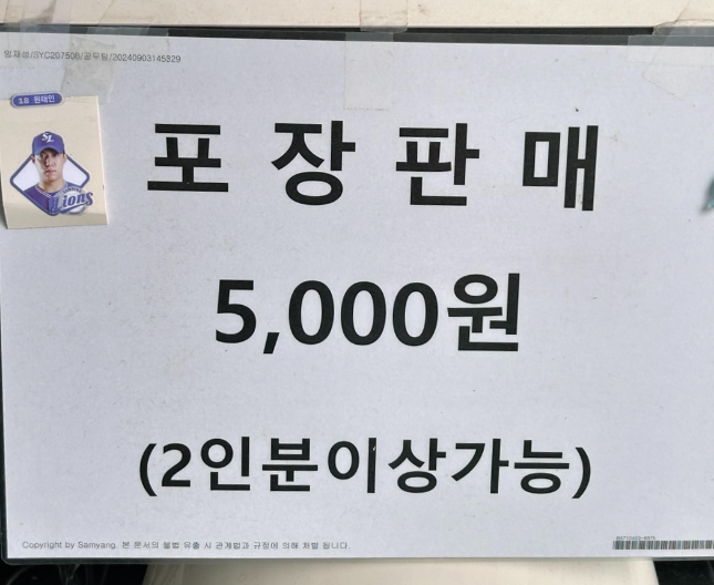 포장은 5,000원 (2인분 이상 가능)