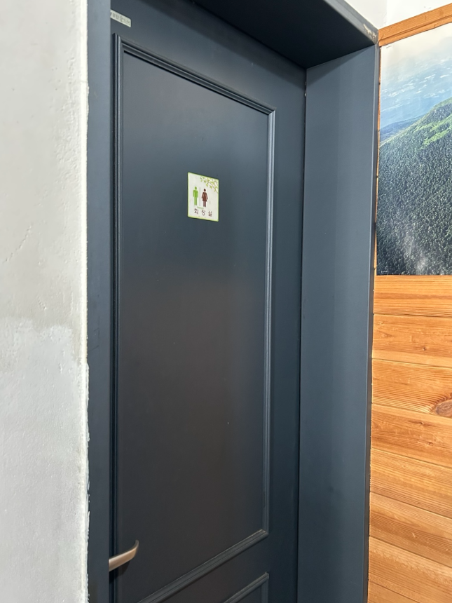 셀프바 왼쪽으로 화장실 가는 입구가 있습니다. 남, 여 공용 입니다.
