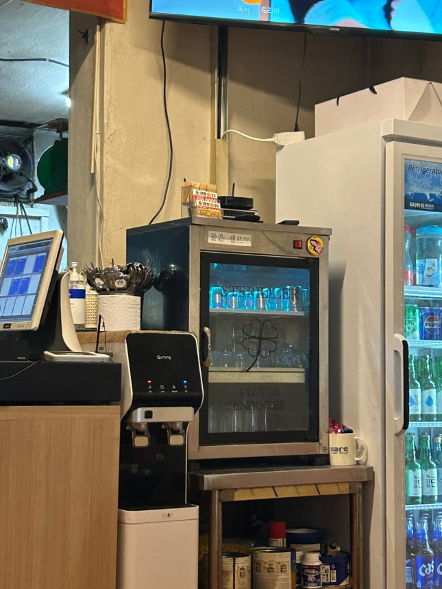 물, 컵은 셀프여서 직접 가져와주시면 돼요.