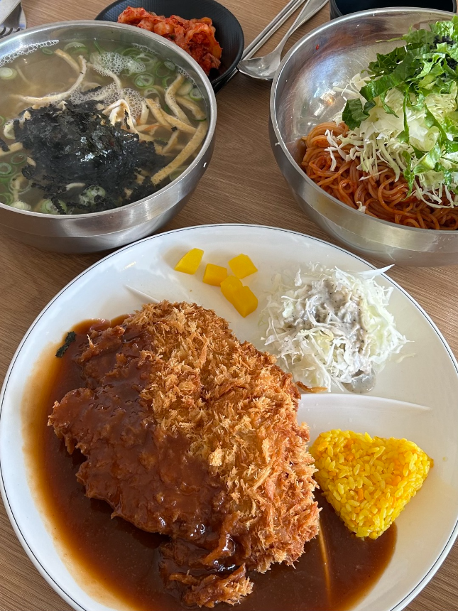 멸치국수 비빔국수 돈까스