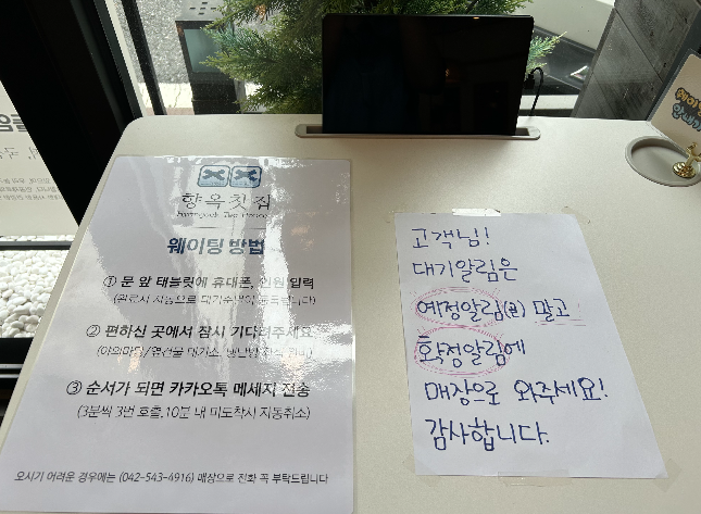블루리본 2개인 향옥찻집, 웨이팅 시 태블릿에 정보 입력 후 확정 알림에 매장으로 오시면 된다고 합니다!