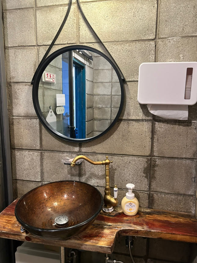 화장실은 여자, 남자 각각 1칸씩 있고 깨끗하게 관리되어 있고 문 앞 세면대도 깨끗해서 좋았어요!