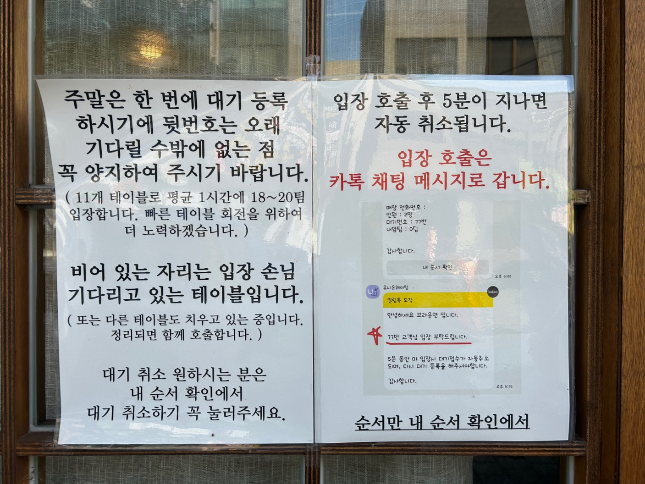 앞에 웨이팅이 많이 없어도 웨이팅 접수를 해놓고 오픈과 동시에 불러주시는 순번 순으로 들어가는 시스템인거 같았습니다.