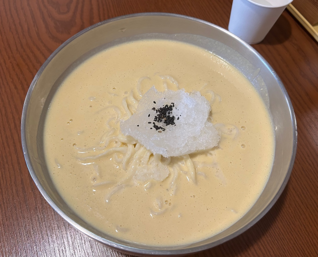 남편이 시킨 냉콩생면은 평소 콩국수를 자주 먹는 남편의 말로는 맛있기는 하지만 식사 느낌이 아닌 간식 느낌의 콩국수인거 같다. 라고 하더라구요 ㅎㅎ 저는 콩국수를 안먹어서 그 느낌이 뭔지 몰라 공감불가 입니당..ㅎㅎㅎ