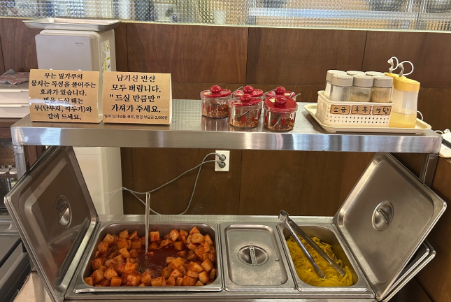 깍두기, 단무지는 셀프바에서 직접 가져와주시면 돼요.