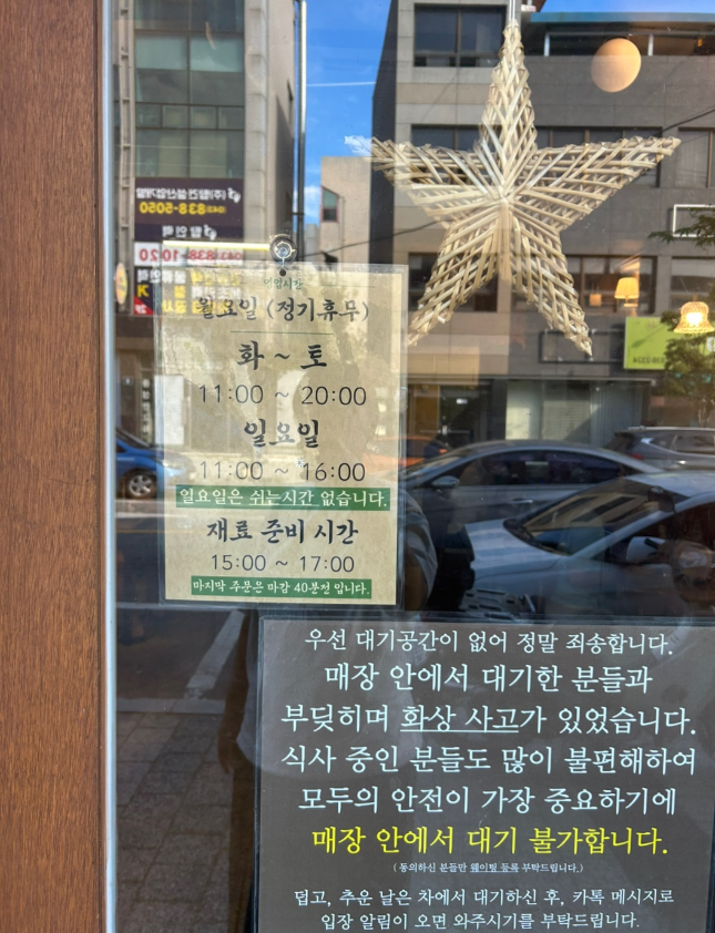 앞에 웨이팅이 많이 없어도 웨이팅 접수를 해놓고 오픈과 동시에 불러주시는 순번 순으로 들어가는 시스템인거 같았습니다.